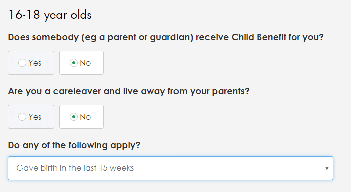 New questions to determine eligibility for support for people aged 16-18 are now live in the calculator