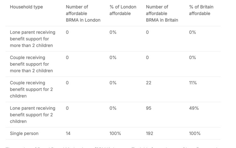 London is still mainly unaffordable for larger families. However, families with more than two children could now afford to rent in over 70% to 85% of Britain compared to nowhere within the current benefit cap.