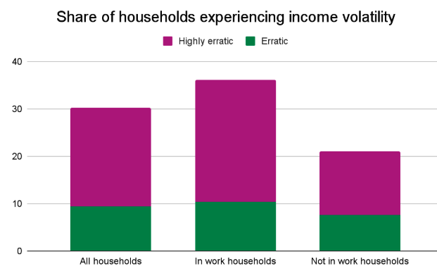 - Almost a third of Universal Credit households experience income volatility
