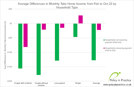 Figure 3: Differences in take-home income by household type from February to October based on whether the household received cost of living payments