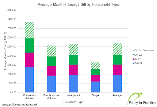The policy will offer more support to larger households which tend to have higher energy costs. Couples with children will see the largest savings in their energy bills of £88 per month, as shown in Figure 1. Overall, it will provide certainty of the maximum cost of a unit of energy for two years and will reach all households.